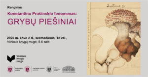 Sekmadienį, kovo 2 d., 12 val. Vilniaus knygų mugėje, 5.6 konf. salėje, vyks renginys „Konstantino Prošinskio fenomenas: grybų piešiniai“. Dalyvauja Jonas Kasparavičius, Inga Berulienė, Audrius Skridaila.
